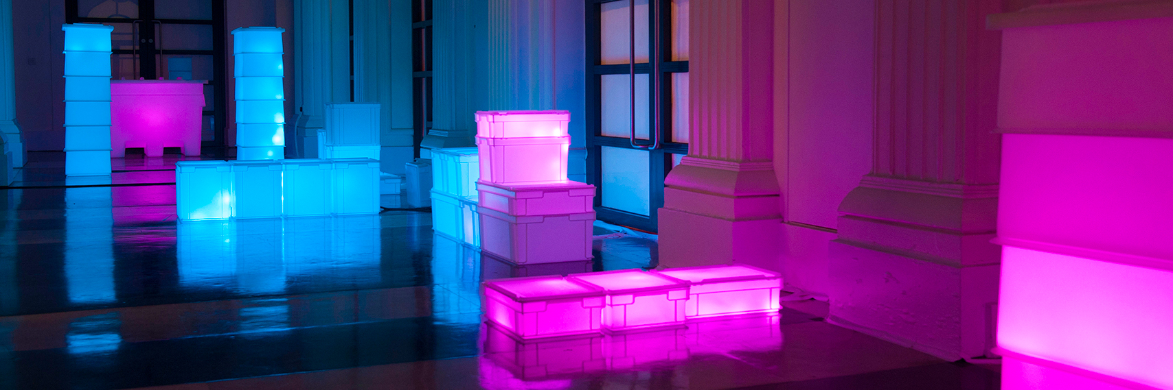 In an event that presents Mailbox products in a completely new and unexpected way, lighting designer Tracey Gibbs has used a selection of the company’s plastic containers as the basis for her immersive installation ‘A Room of Calm’, commissioned as part of Liverpool’s LightNight festival. The installation uses light to transform not only the space but also the audience themselves, employing carefully selected tones from the colour spectrum that have been shown to calm the mind, slow down the heart rate, lower blood pressure and reduce anxiety. Tracey chose to use plastic as her medium because it diffuses light so well, creating a soft, gentle, soothing effect that invites the audience to reach out to the boxes of light, interacting with them and experiencing the installation through touch as well as sight. Her work elevates an apparently utilitarian item to produce an artwork by bringing out the beauty in something we see around us every day, transforming it from within.